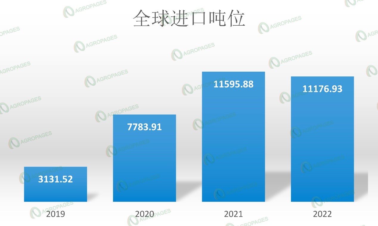 據(jù)不完全統(tǒng)計,2019年全球各國進口單氰胺僅為3131.5噸,到2021年達到了11595.8噸,年均增長率達到98%。而2022年1-10月已經(jīng)達到去年全年水平,各國都在進一步增加進口。據(jù)了解該含量的單氰胺主要應用在植物破眠領(lǐng)域,且已經(jīng)在破眠領(lǐng)域成為一款主打產(chǎn)品同時市場也比較穩(wěn)定(排除未來的禁限用風險)。