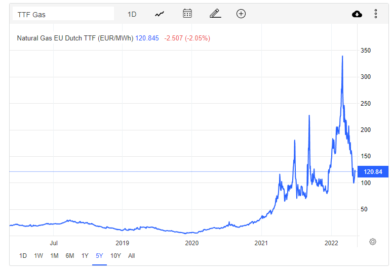 一噸單氰胺(50%含量)需要1.65噸石灰氮 300度電,1噸石灰氮需要0.8噸電石,1噸電石需要3000度電,因此一噸單氰胺的生產(chǎn)成本會嚴重受到電石成本的影響。截至發(fā)稿時,與歐洲天然氣批發(fā)價格TTF掛鉤的天然氣期貨價格約為每兆瓦時120歐元,接近10月觸及的五個月低點,不到夏季峰值339歐元的三分之一,但仍然是2021年 10月份每兆瓦時65美元的兩倍。就以120歐元一兆瓦時來計算,相當于8.64元RMB/立方米(中國工業(yè)用氣2塊多),天然氣熱值為8400Cal/m3,按照85%燃燒效率計算,每立方米天然氣大概可以發(fā)電3.321度,一度電天然氣成本2.6元(中國工業(yè)用電0.5元/kwh)。一噸電石,歐洲生產(chǎn)僅電力成本要比中國高出6300元,一噸單氰胺比中國的生產(chǎn)成本也要高出7000元以上。這對于一款售價僅為3800USD/噸(50%水溶液)的品種來說,成本增加40%對其穩(wěn)定生產(chǎn)和供應是非常不利的。也許該產(chǎn)品在德國有減產(chǎn)甚至停產(chǎn)風險。