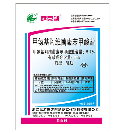 甲氨基阿維菌素苯甲酸鹽是一種殺蟲劑,可全身作用,接觸和攝取。建議用于控制使用說明表中描述的有害生物
